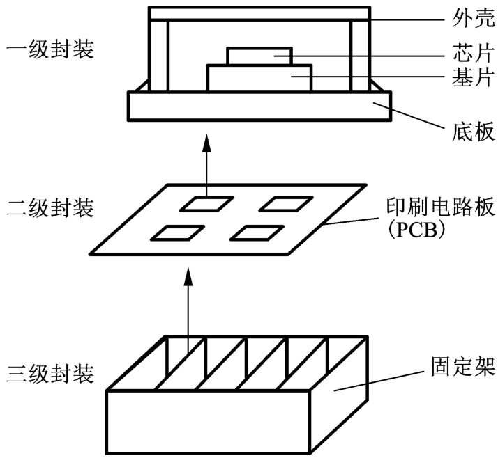 微電子封裝技術(shù)即半導(dǎo)體封裝技術(shù),或先進(jìn)集成電路封裝,主要起到電源供給、信息交流、散熱、芯片保護(hù)和機(jī)械支撐等作用,一般可分為4個(gè)主要層次: